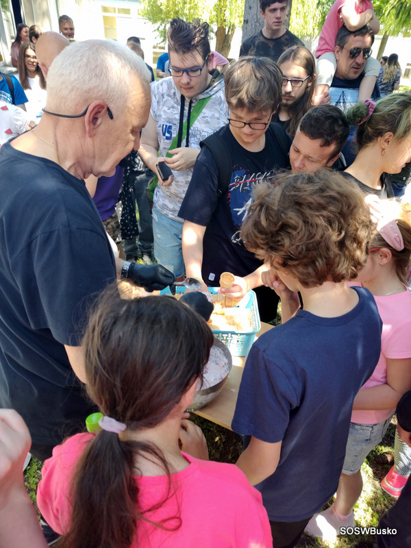 „Wybuchowa nauka” to był kolejny punkt programu przedstawiony przez pana Wiesława Marciniaka byłego nauczyciela naszego Ośrodka, który przygotował „czary mary” z ciekłego azotu, a poważnie mówiąc, lekcję fizyki w niezwykle ciekawy sposób. Efektem tego był lodowy deser o różnych smakach.