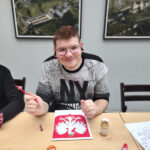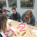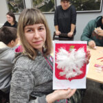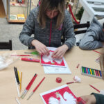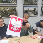 Po skończeniu zwiedzania uczestnicy wycieczki wzięli udział w warsztatach niepodległościowych, na których z bardzo dużym zaangażowaniem wykonywali godło Polski. Pod koniec zajęć dołączył do młodzieży starszy dokumentalista/ archeolog Pan mgr Dariusz Greń, który zaprosił ich do Ośrodka Edukacji Przyrodniczej w Umianowicach na lekcję muzealną w terenie. Z wielką pasją Pan Dariusz opowiedział o pracy archeologa. Pokrótce omówił epokę kamienia, brązu i żelaza. Podał ciekawe informacje na temat ludzi mieszkających w danej epoce oraz o ich codziennym życiu. Wspomniał również