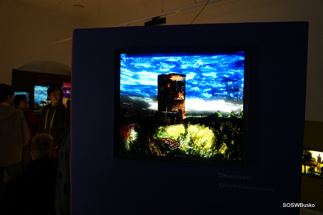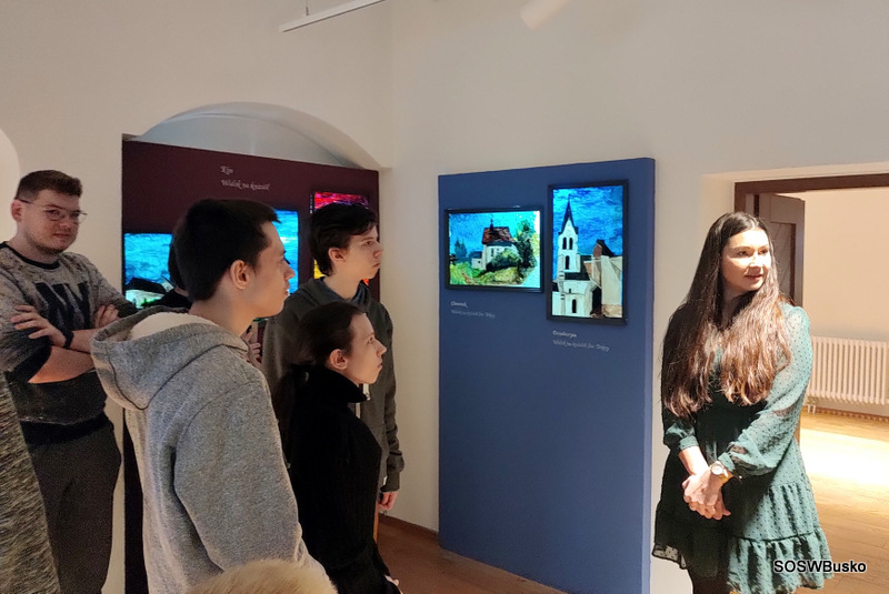 Następnie uczniowie udali się na zwiedzanie wystawy czterdziestu obrazów – witraży oraz dziesięciu makiet przedstawiających zabytki Ponidzia. Tematem wystawy jest „Ponidzie na szkle”. Wszystkie eksponaty, z wielką dbałością o szczegóły i precyzją, zostały wykonane przez więźniów z miejscowego Zakładu Karnego, wzorujących się jedynie na zdjęciach.