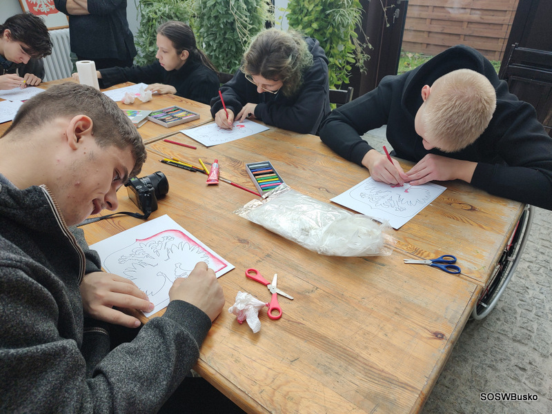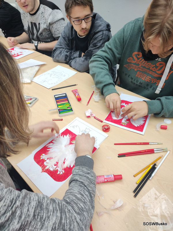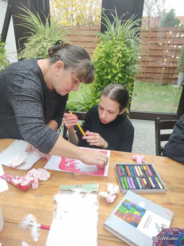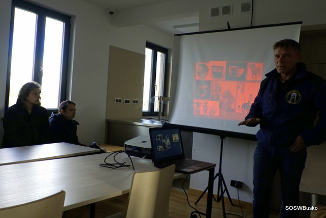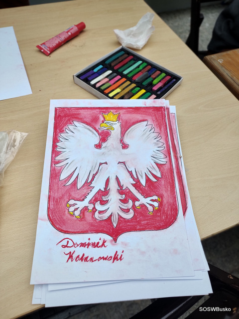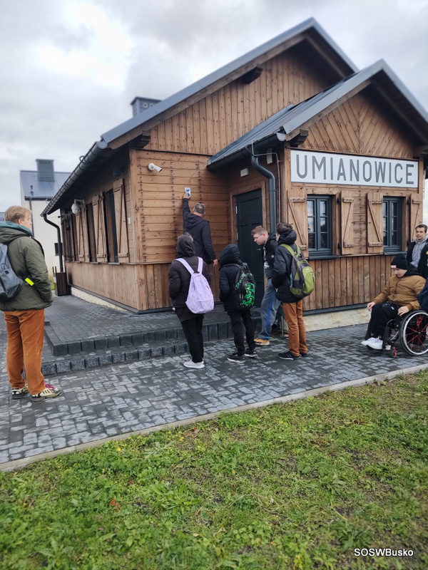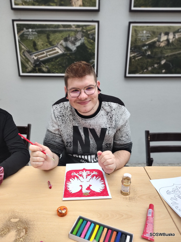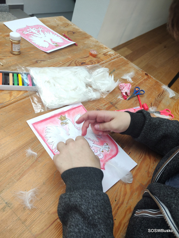 Po skończeniu zwiedzania uczestnicy wycieczki wzięli udział w warsztatach niepodległościowych, na których z bardzo dużym zaangażowaniem wykonywali godło Polski. Pod koniec zajęć dołączył do młodzieży starszy dokumentalista/ archeolog Pan mgr Dariusz Greń, który zaprosił ich do Ośrodka Edukacji Przyrodniczej w Umianowicach na lekcję muzealną w terenie. Z wielką pasją Pan Dariusz opowiedział o pracy archeologa. Pokrótce omówił epokę kamienia, brązu i żelaza. Podał ciekawe informacje na temat ludzi mieszkających w danej epoce oraz o ich codziennym życiu. Wspomniał również