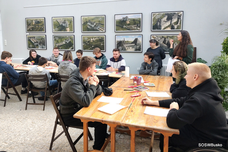 W dniu 8 listopada uczniowie Ośrodka wzięli udział w wycieczce do Domu Ariańskiego na Mirowie w Pińczowie. Na miejscu przywitała ich dyrektor Muzeum Regionalnego w Pińczowie – dr Justyna Dziadek. Wstępem do zwiedzania była historia budynku, który wybudowany został na przełomie VI i XVII wieku, czyli na styku dwóch epok – Renesansu i Oświecenia. Przypuszcza się, że był to dom wójta mirowskiego. Pani dyrektor muzeum przedstawiła również historię, nie istniejącego już, zamku mieszczącego się na terenie Pińczowa. Znajdująca się w Domu Ariańskim wizualizacja Pińczowskiego Zespołu Zamkowego z przełomu XVII i XVIII wieku została wykonana przez grafika Mateusza Staniszewskiego.