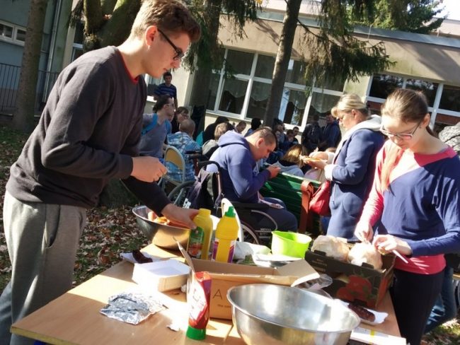 Dnia 17 października (w środę) o godzinie 11:00 zorganizowaliśmy w naszej szkole ognisko. Dzięki świetnej muzyce i atmosferze wszyscy uczestnicy miło spędzili czas, poznając się i integrując z nowymi uczniami naszej placówki. Ale najważniejsza częścią imprezy były kiełbaski i pieczone ziemniaki. To one odgrywały główna rolę. Zapewne każdy wyczekiwał jedzonka z niecierpliwością. Był to ciekawy oraz przyjemny dzień na świeżym powietrzu. Można powiedzieć – taki odpoczynek od obowiązków, każdy…