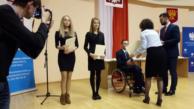 06.02.2019 r. w Urzędzie Wojewódzkim w Kielcach wręczono stypendia Prezesa Rady Ministrów i MEN dla najlepszych uczniów. Stypendia wręczyli wicekurator Katarzyna Nowacka i pełnomocnik wojewody Wiktor Michał Kowalski. Stypendystą został również uczeń Specjalnego Ośrodka Szkolno-Wychowawczego dla Niepełnosprawnych Ruchowo w Busku Zdroju Krystian Wesołowski, który jest uczniem klasy III Technikum Informatycznego. Serdecznie gratulujemy i życzymy dalszych sukcesów.