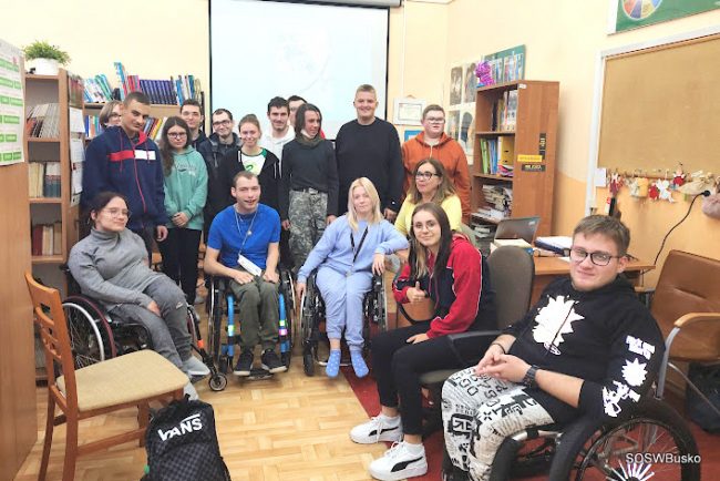 19 października uczestniczyliśmy w spotkaniu z absolwentem naszego Ośrodka Sebastianem Brosiem. Sebastian to osoba niepełnosprawna ruchowo mieszkająca w niewielkiej miejscowości w Małopolsce. Edukację w naszym Ośrodku zakończył w 2019 r. i bardzo chętnie nas odwiedza dzieląc się swoimi życiowymi sukcesami. Jest pogodny, pełen energii, poczucia humoru i życiowego entuzjazmu. Pomimo fizycznych ograniczeń realizuje się w sferze zawodowej, sportowej, społecznej. Pracuje , wspina się na ściance, odwiedza strzelnicę…