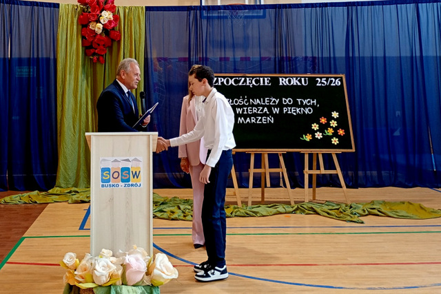 1 września 2025 r. w sali gimnastycznej Specjalnego Ośrodka odbyła sie uroczysta inauguracja nowego roku szkolnego. Po raz pierwszy w roli Dyrektora placówki wystąpiła pani Ewa Tomala, która w swoim przemówieniu podkreśliła, że szkoła to nie tylko miejsce zdobywania wiedzy, lecz także przestrzeń wsparcia, współpracy i wzajemnego szacunku. W uroczystości uczestniczył pan Jerzy Kolarz, Starosta Buski, który wręczył stypendium Mikołajowi Kolanowskiemu, uczniowi klasy drugiej Technikum. Pan Starosta zwrócił się…