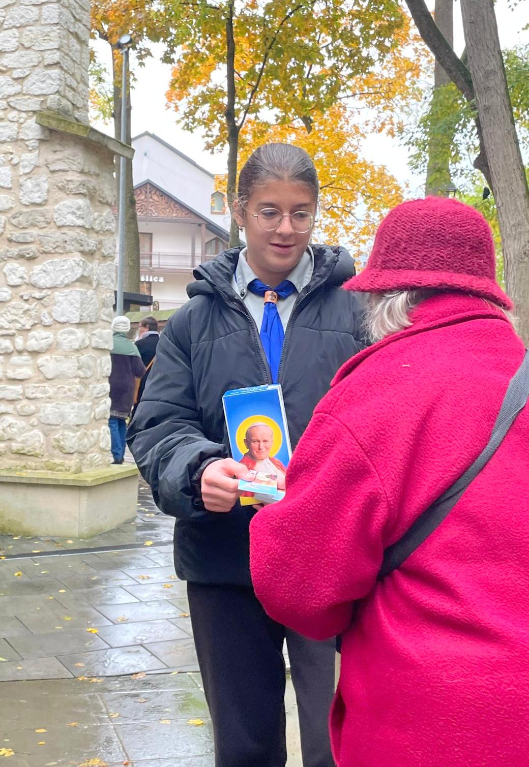12 października 2025 roku obchodziliśmy XXV Dzień Papieski, który był okazją do refleksji nad dziedzictwem św. Jana Pawła II oraz do podkreślenia wartości, które głosił – nadziei, miłości i troski o drugiego człowieka. W naszej szkole, jak co roku, uczniowie, harcerze i członkowie Szkolnego Koła Wolontariatu aktywnie włączyli się w obchody tego wyjątkowego dnia, biorąc udział w kwestowaniu przy kaplicy św. Anny na rzecz zdolnej młodzieży z mniej zamożnych rodzin.