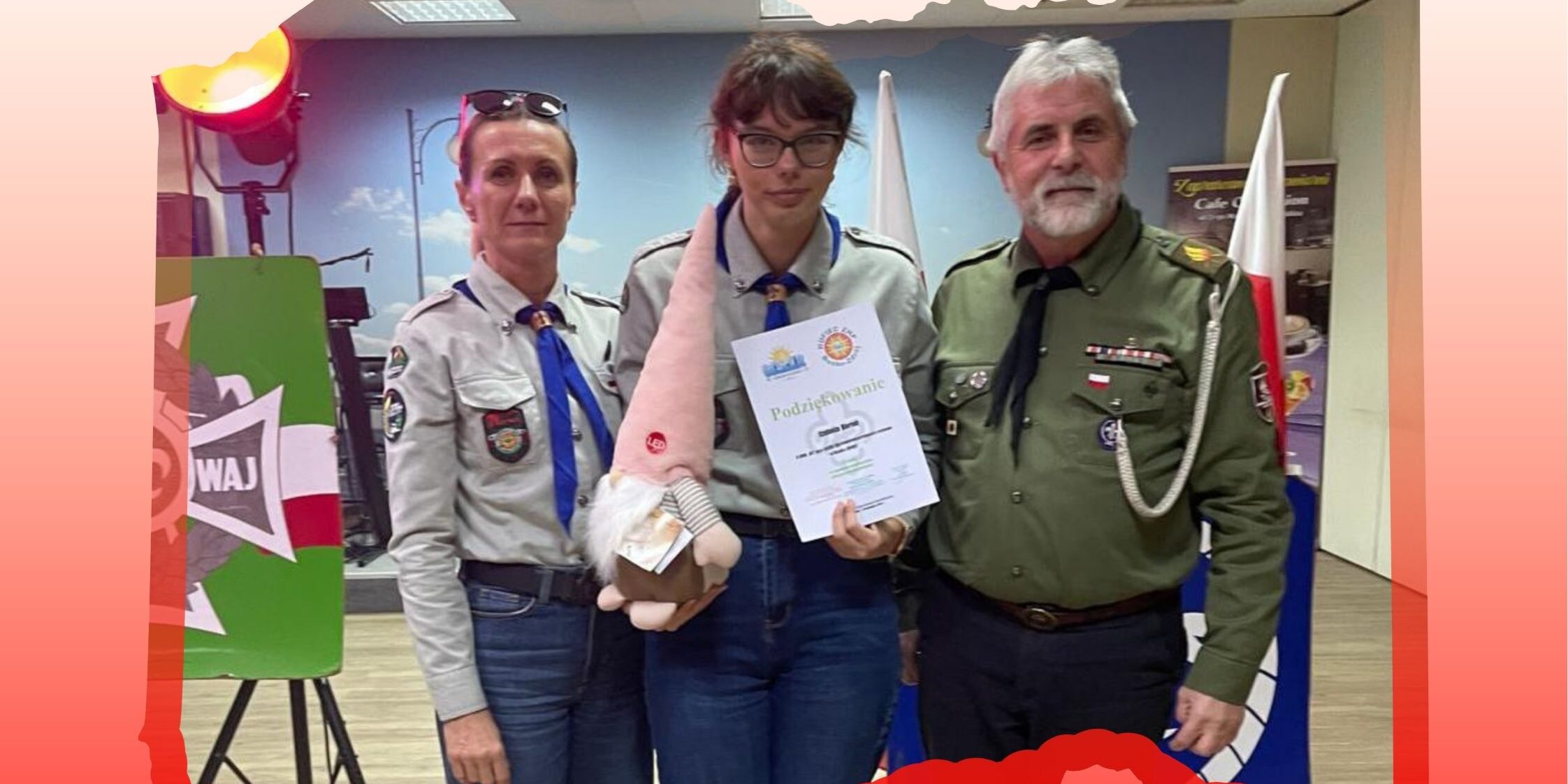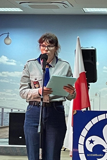 Naszą drużynę harcerską reprezentowała Izabela Boroń, która z wielkim zaangażowaniem zaprezentowała utwór „Rozkwitały pąki białych róż”. Jej występ wzruszył publiczność i został nagrodzony gromkimi brawami.