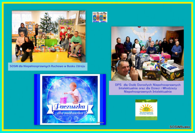 W dniach od 5 grudnia 2022 r. do 5 stycznia 2023 r. po raz pierwszy przeprowadziliśmy w naszym Ośrodku akcję charytatywną „Paczuszka dla maluszka”, organizowaną przez Fundację Małych Stópek. Na szkolnym korytarzu stanęła ubrana w niebieskie bombki choinka, pod którą można było zostawić paczuszkę. Zbieraliśmy dary dla Domu Pomocy dla Osób Dorosłych Niepełnosprawnych Intelektualnie oraz Dzieci i Młodzieży Niepełnosprawnych Intelektualnie w Tarnobrzegu. W ramach tej akcji zbieraliśmy: Kosmetyki dla osób pieluchowanych…