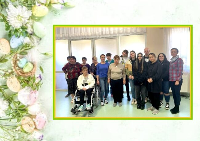 Jak co roku tuż przed świętami, uczestniczyliśmy w spotkaniu z pensjonariuszami Domu Pomocy Społecznej w Zborowie. Nasi Wolontariusze wręczyli mieszkańcom Domu własnoręcznie wykonane kartki z życzeniami świątecznymi. Spotkania te są dla nas zawsze bardzo ważne, niezwykle wzruszające i pełne pozytywnych emocji. Wszystkim Pensjonariuszom, Dyrekcji oraz Pracownikom życzymy raz jeszcze radosnych Świąt Wielkanocnych.
