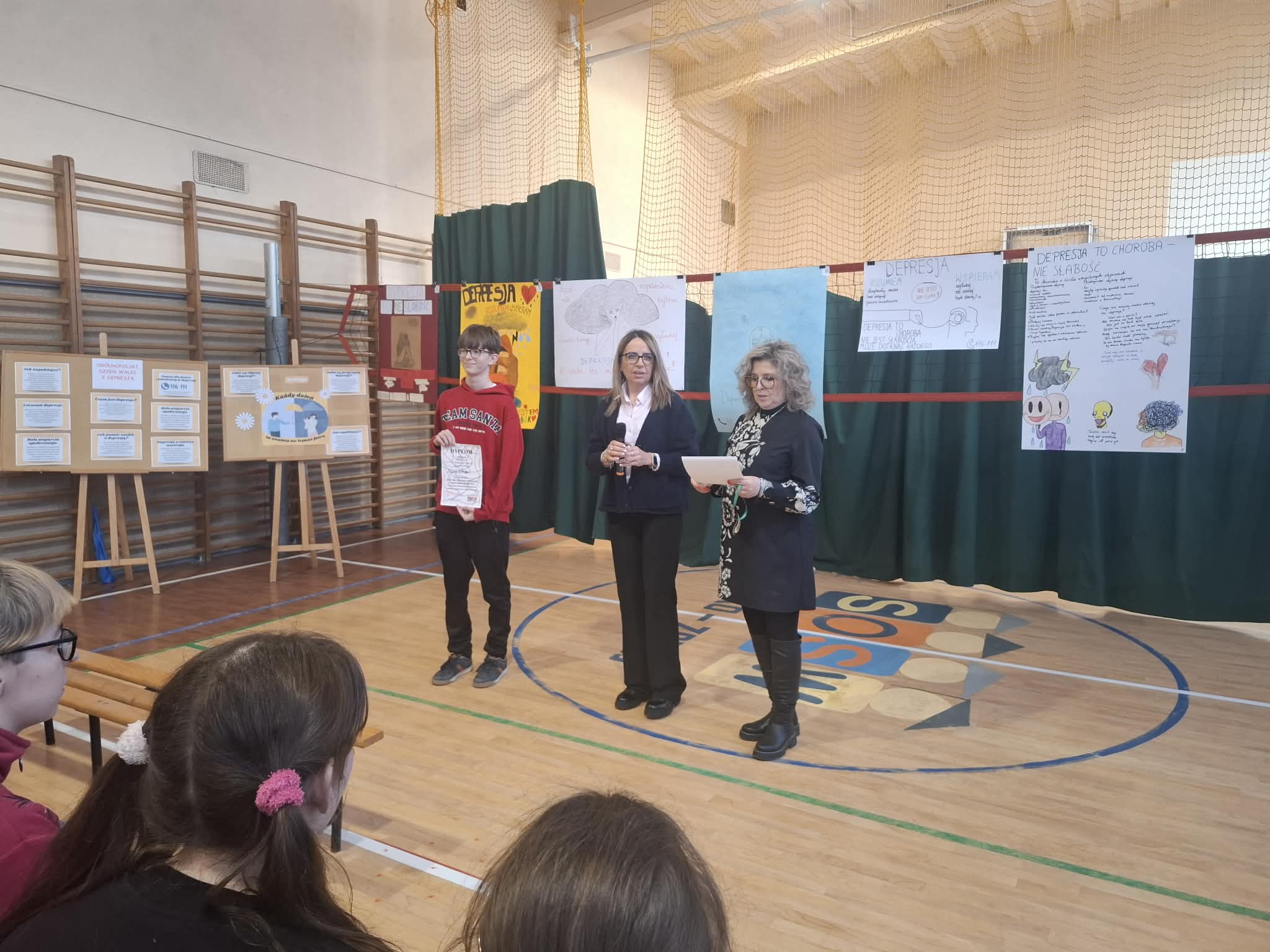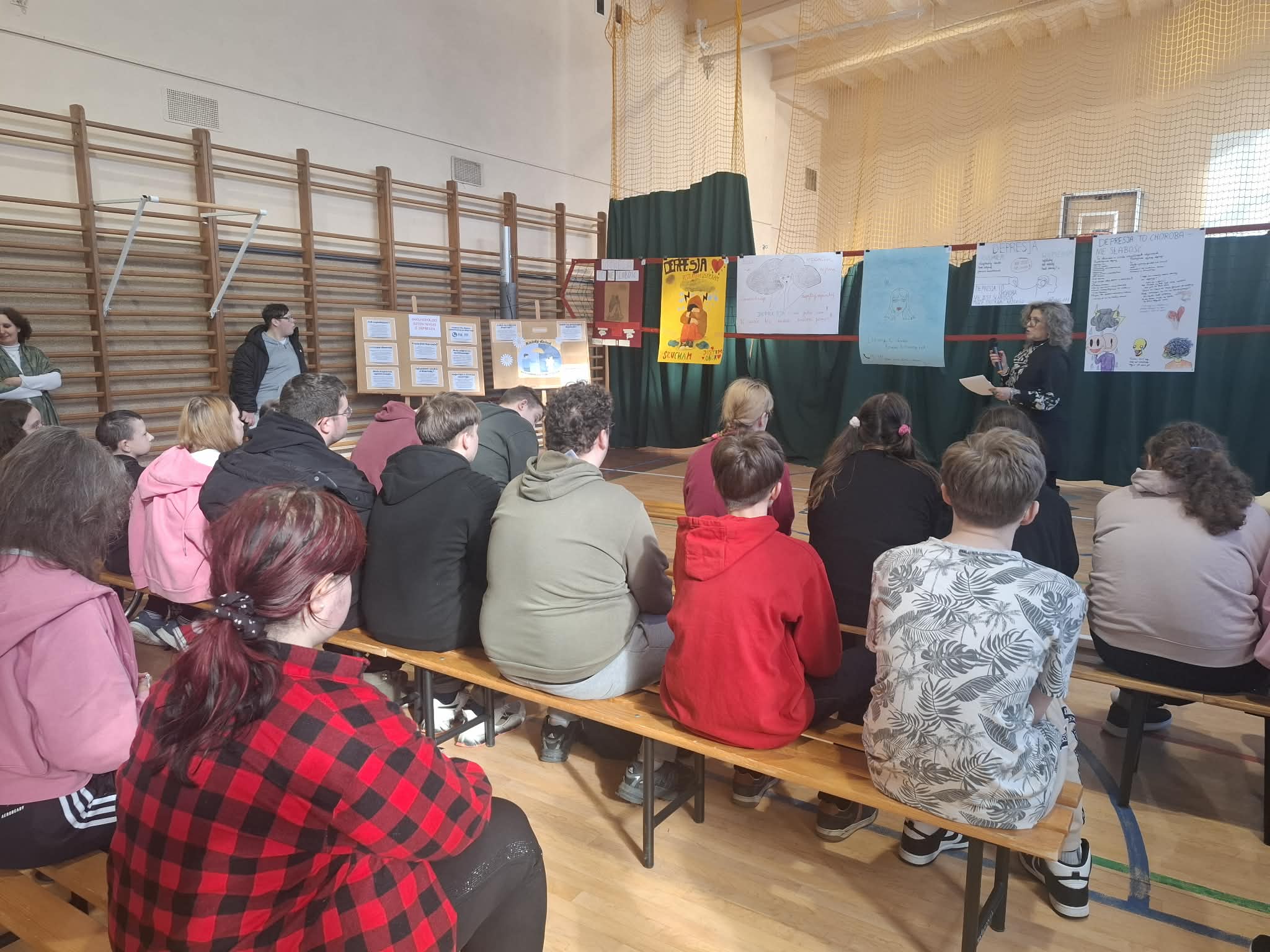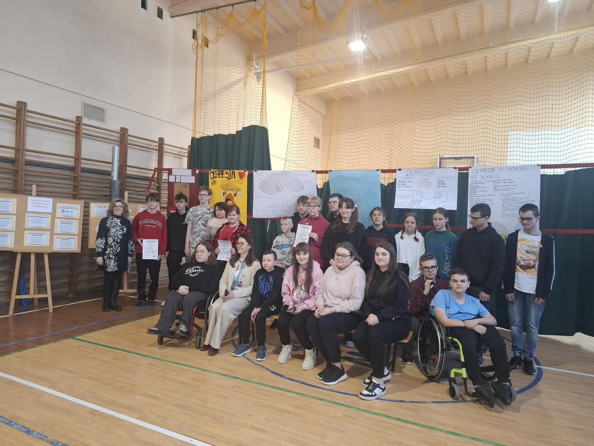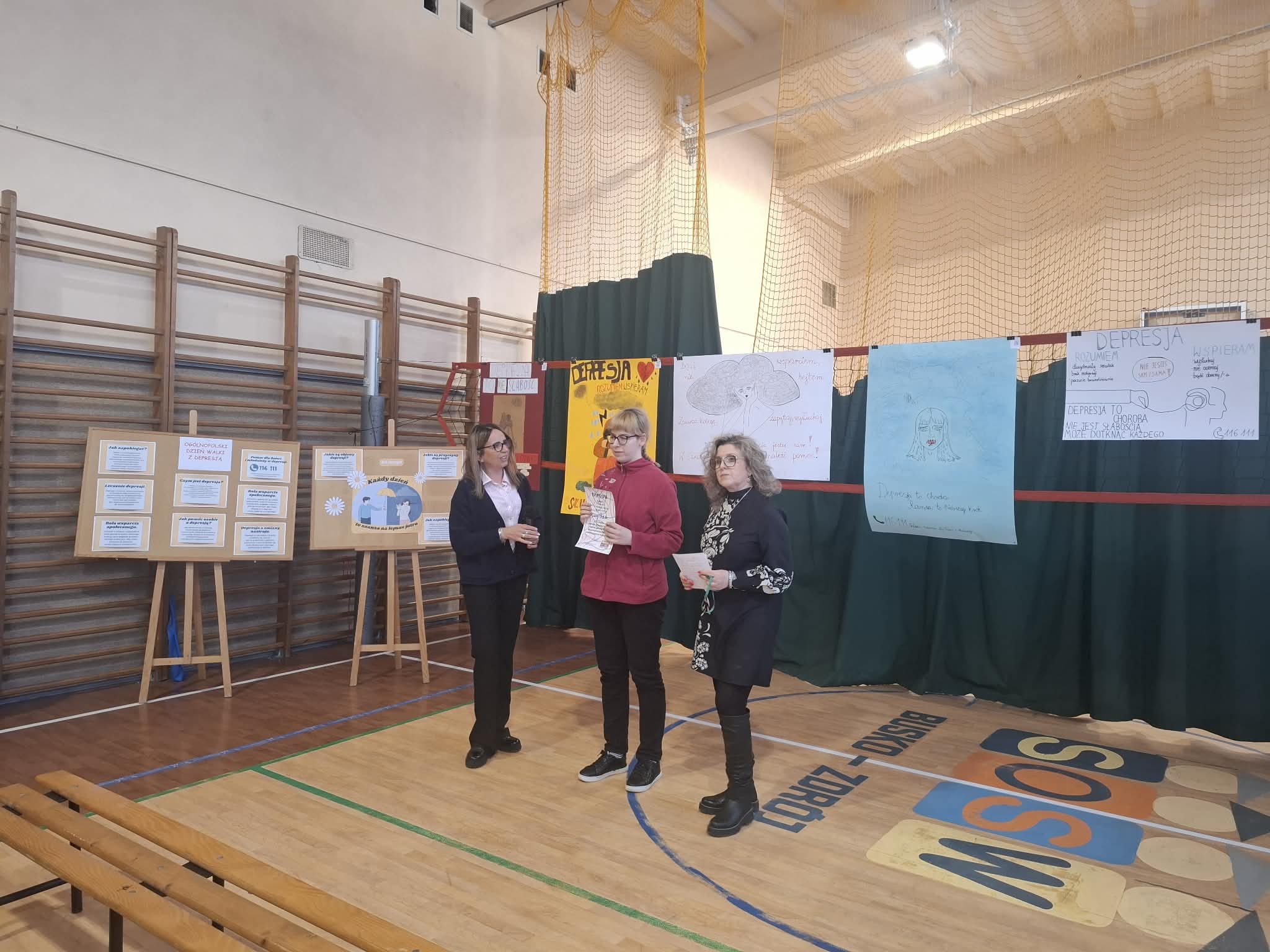 W naszej szkole uroczyście obchodzono Światowy Dzień Depresji, którego celem było zwiększenie świadomości na temat zdrowia psychicznego oraz podkreślenie znaczenia wczesnego reagowania na sygnały świadczące o kryzysie emocjonalnym. W ramach wydarzenia w zespołach klasowych przeprowadzono zajęcia poświęcone tematyce depresji, obejmujące jej objawy, możliwości udzielania wsparcia oraz dostępne formy pomocy. Warsztaty zostały zrealizowane pod opieką pedagoga Marzeny Jasiukowicz oraz psycholożek Magdy Błażejowskiej i Agnieszki Omasty, które zapewniły merytoryczne przygotowanie i profesjonalne wsparcie uczestnikom. Integralną częścią obchodów był konkurs pod hasłem „DEPRESJA – WIEM – ROZUMIEM”, w którym młodzież wykazała się dużą wrażliwością, dojrzałością i zaangażowaniem. Uczniowie przygotowali plakaty niosące ważny przekaz — zachęcający do reagowania, okazywania troski oraz korzystania z pomocy w sytuacjach trudnych emocjonalnie.