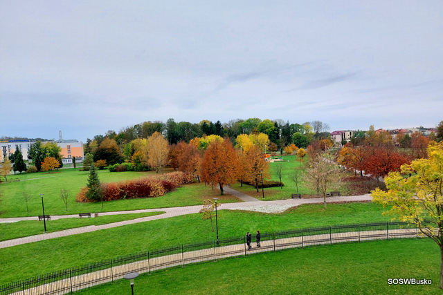 Jedna z tras przebiegała przez Park Zdrojowy. Po drodze uczniowie mogli zobaczyć zabytki, tj. kaplicę zdrojową, sanatorium Marconiego oraz podziwiać stare drzewa. Odwiedzili również tężnię solankową, która jest jedną z największych i najnowocześniejszych tężni w Polsce. Nazywana jest płucami Buska – Zdroju. O tajemnicach tego miejsca opowiedzieli pracownicy zajmujący się tym obiektem – p. Przemysław Drzazga i p. Daria Szostak. Uczestnicy spaceru mogli zajrzeć do miejsc, które na co dzień nie są dostępne dla zwiedzających. Wzięli również udział w badaniach zasolenia wody spływającej po tarninie, z której zbudowane są ściany tężni. Zwiedzili dom zdrojowy w którym mieści się pijalnia wód i całoroczna mini tężnia. Mogli poznać smak wód leczniczych, które oferuje nasze uzdrowisko.