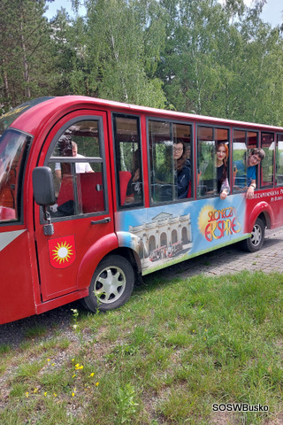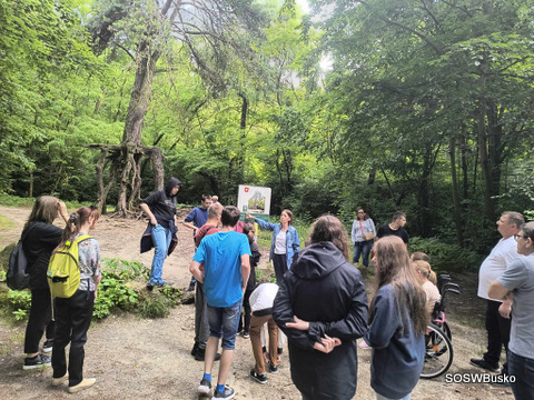 Pasjonaci literatury i ekologii wybrali się Słonecznym Ekspresem na wycieczkę szlakiem prowadzącym do „Sosny na Szczudłach”. Jadąc ekologicznymi pojazdami, dzięki ogromnej wiedzy przewodnika p. Jerzego Libudy, poznawali historię i zabytki Buska-Zdroju. Podziwiali piękno przyrody Szanieckiego Parku Krajobrazowego. Po dotarciu do „Sosny na szczudłach” poznali jej cechy i pochodzenie oraz historię jej nietypowego wyglądu. Podziwiali jej wyjątkowość, portretowali ją ołówkiem lub aparatem fotograficznym.