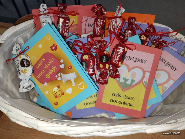 To wyjątkowe święto skłania nas do refleksji nad tym, jak ważne jest dostrzeganie i docenianie nie tylko wielkich osiągnięć, ale także drobnych gestów i codziennych aktów życzliwości. Właśnie tego dnia nasi wolontariusze przygotowali kartki z życzeniami oraz słodkim upominkiem dla tych, którzy tworzą społeczność naszego Ośrodka i są z nami cały rok. Dziękujemy i doceniamy Waszą pracę.