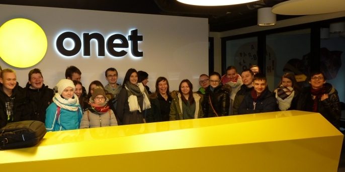 Po budynku oprowadzał nas Janusz Schwertner – dziennikarz znany nam ze słynnego artykułu na portalu onet.pl „Jak Mateusz Kijowski wystawiał faktury KOD-owi”. Zdziwiło nas, że jest taki młody i że współpracuje także z magazynem „Playboy”. Janusz pokazał nam wszystkie ciekawe miejsca m.in. kawiarenkę, kilka miejsc pracy pracowników tego portalu, zatrudniającego aż 100 menagerów i ok. 700 specjalistów z różnych dziedzin. Zwiedziliśmy także stylową pracowniczą kawiarenkę na parterze oraz redakcję wiadomości – sekcję newsów. Marek Wójcik – inżynier systemów w Onecie wprowadził nas w tajniki pracy serwerowni, odpowiadając na pytania młodych informatyków na temat procedur w razie katastrofy, ataku hakerskiego, wolnometrycznego, czy zamachu terrorystycznego, a także o możliwość stażu w firmie. Okazało się, że wszyscy dotychczasowi stażyści sprawdzili się i pracują tu nadal. Z relacji osób prowadzących warsztaty dla naszej grupy wynikało, że w tej firmie pracują na kilku zmianach sami pasjonaci i zapaleńcy, którzy muszą być zawsze gotowi na pracę po godzinach, we wszystkie weekendy i święta. Plusem jest jednak to, że nie ma tu tzw. polowania na czarownice, szukania kozła ofiarnego w razie wpadki dziennikarskiej. Winny rozliczany jest dopiero wtedy, gdy nie wyciąga wniosków ze swoich błędów. Jednym słowem wszyscy czują się tu jedną, dużą rodziną.