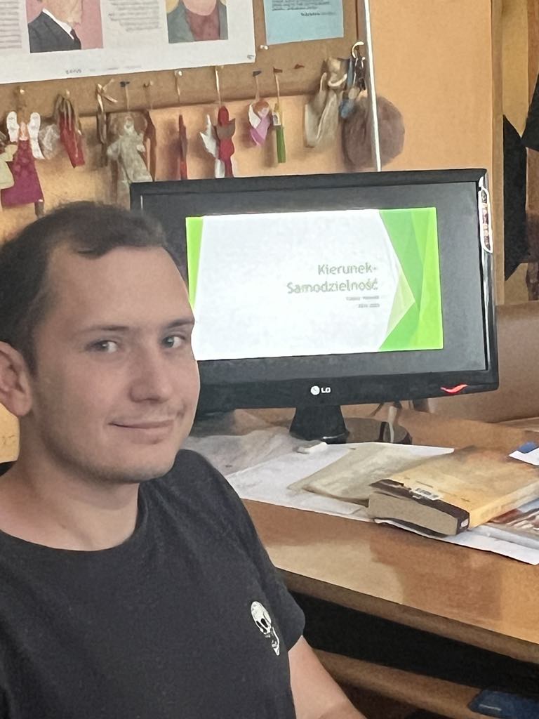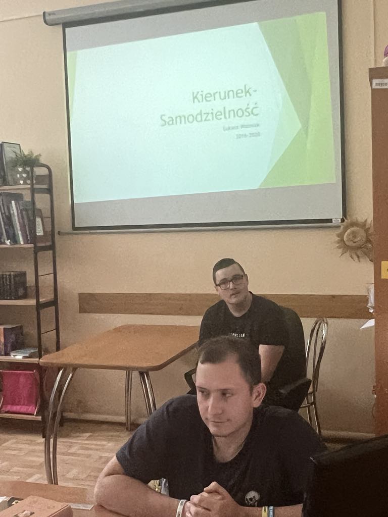 W poniedziałek 9 września 2024 w bibliotece szkolnej uczniowie pierwszych klas SOSW uczestniczyli w spotkaniu z absolwentem naszego Technikum Łukaszem Wożniakiem.