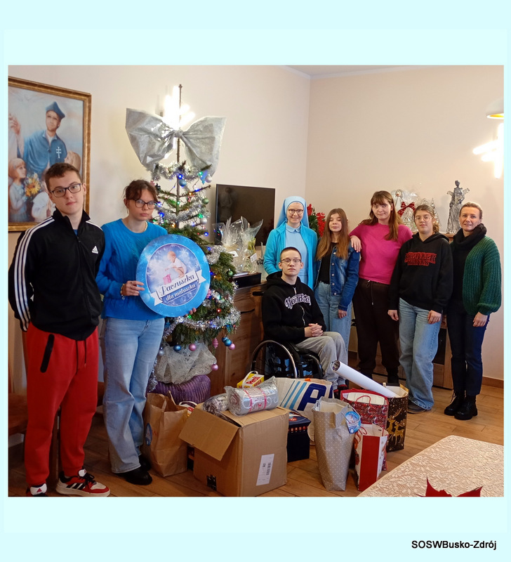 Specjalny Ośrodek Szkolno‑Wychowawczy dla Niepełnosprawnych Ruchowo w Busku‑Zdroju po raz trzeci włączył się w ogólnopolską akcję Fundacji Małych Stópek „Paczuszka dla Maluszka”. Działania rozpoczęły się na początku grudnia 2025 r., kiedy to na szkolnym korytarzu ustawiono świąteczną choinkę, pod którą społeczność szkolna mogła składać dary dla podopiecznych Domu Ojca Gwidona w Pacanowie.