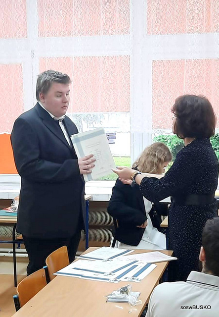 Uroczystość była doskonałą okazją, aby wszystkich wyróżniających się uczniów uhonorować nagrodami. Świadectwo z wyróżnieniem oraz Nagrodę Starosty Buskiego otrzymał Sebastian Kolanowski, Nagrodę Dyrektora SOSW otrzymali: Dominika Paluch i Dominik Kolanowski, który również mógł poszczycić się świadectwem z biało – czerwonym paskiem.