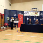 Jego wystąpienie miało charakter motywacyjny i wspierający. Następnie przedstawiciele uczniów Gabriel Kochman uczeń KL IV T i Karolina Gajos uczennica KL II SP TA wręczyli Panu Łukaszowi Szelidze podziękowanie, w imieniu Dyrekcji i młodzieży, za wspólnie spędzony czas, podzielenie się swoim doświadczeniem i sukcesami, które będą ich inspirować i motywować do pokonywania trudności w codzienności jak i dążeniu do wytyczonych celów.