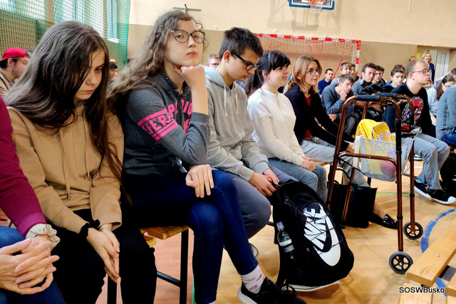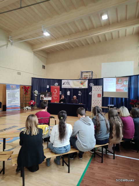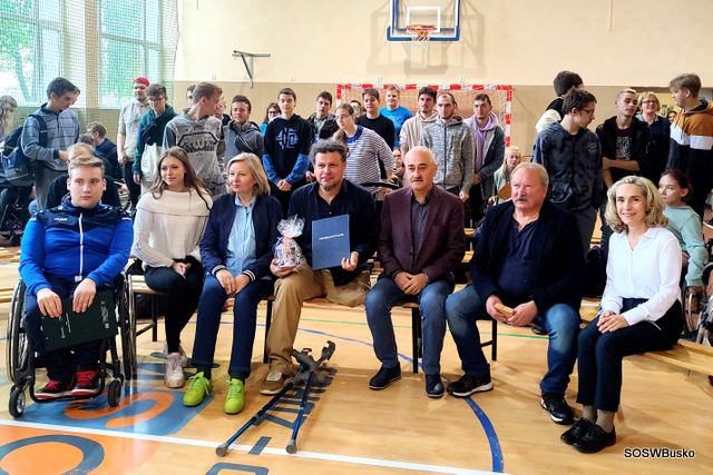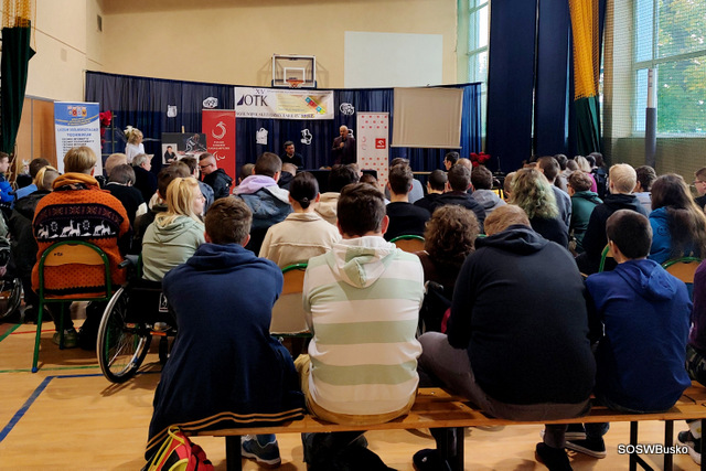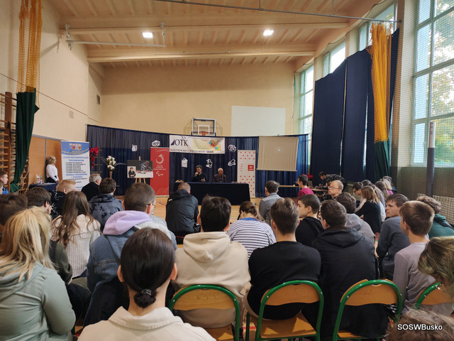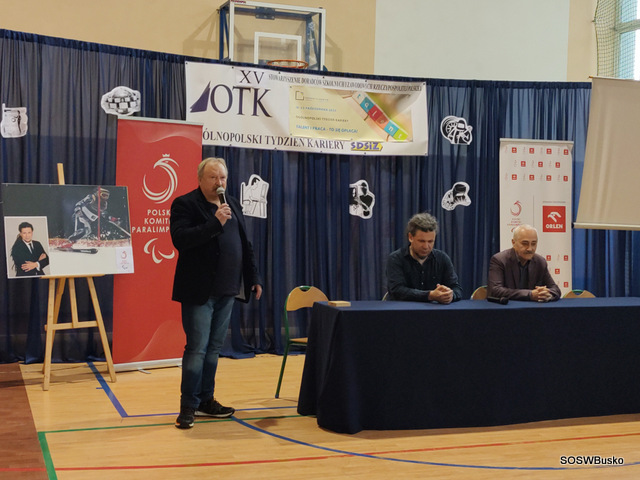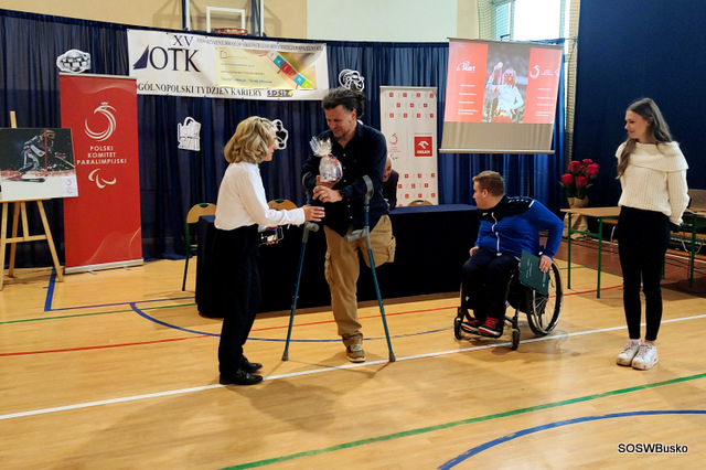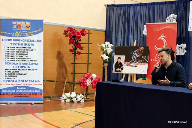 Pan Łukasz Szeliga opowiedział naszym uczniom, jak wyglądała jego droga do osiągnięcia sukcesu, jakie trudności napotkał i co pozwoliło mu je pokonać. Od dziecka uprawiał różne dyscypliny sportowe, po wypadku wybrał narciarstwo alpejskie – wymagającą i trudną dyscyplinę. Osiągnął sukces dzięki ciężkiej pracy. Podkreślił, że sam talent nie wystarczy, jeśli nie włoży się do tego systematycznej pracy i treningu. Na sukces sportowy składają się czynności doprowadzone do perfekcji. Zaznaczył, że nie zna lepszej i skuteczniejszej rehabilitacji niż sport, dzięki niemu można być samodzielnym w codziennym życiu. Dodał też, że kiedy potrzebna jest pomoc drugiej osoby należy o nią prosić. Życzył naszej młodzieży wytrwałości w dążeniu do swoich celów.