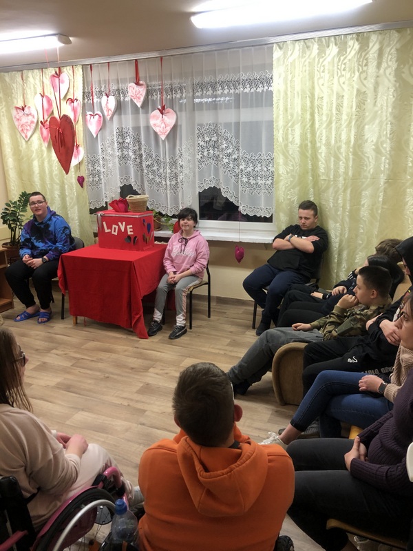 W dniu 11.02.25r. w grupach wychowawczych odbyły się zajęcia pn. „Miłość jako wartość”. Głównym celem spotkania było kultywowanie tradycji walentynkowych oraz rozwijanie u wychowanków wartości takich jak: miłość, przyjaźń, szacunek do drugiego człowieka. Obchody Święta Zakochanych były okazją do integracji młodzieży w grupach wychowawczych, twórczego spędzenia czasu wolnego oraz sprzyjały dyskusji na temat relacji międzyludzkich i ważnych wartości w życiu człowieka. W tym dniu nie mogło zabraknąć poezji, która najpiękniej wyraża uczucie miłości i potęgę emocji zakochanych ludzi. Przyjaznej atmosferze spotkania towarzyszyła muzyka i wspólny śpiew.