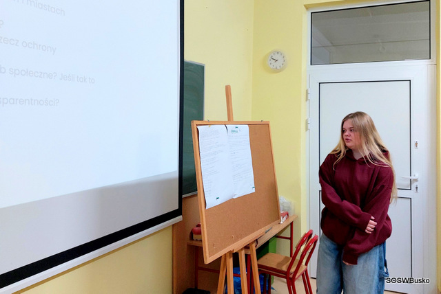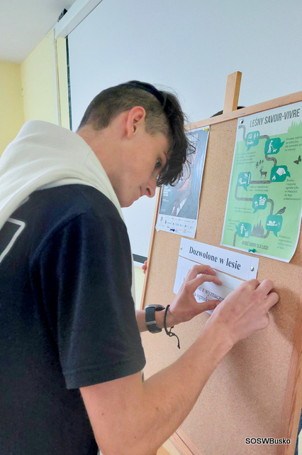 Po części teoretycznej przyszedł czas na działanie – uczniowie wspólnie sprzątali teren wokół szkoły oraz pobliski park. Działania te miały charakter nie tylko praktyczny, ale też edukacyjny – młodzież zachęcała przechodniów do troski o czystość przestrzeni publicznej i ograniczania ilości produkowanych odpadów.
