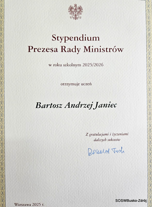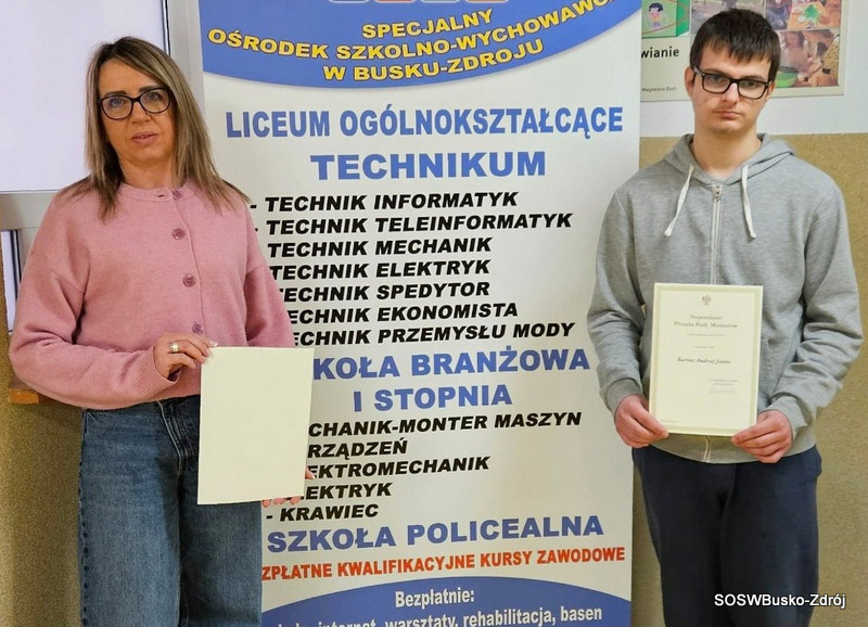 Wśród nagrodzonych znalazł się uczeń klasy IV Technikum naszego Ośrodka – Bartosz Janiec.