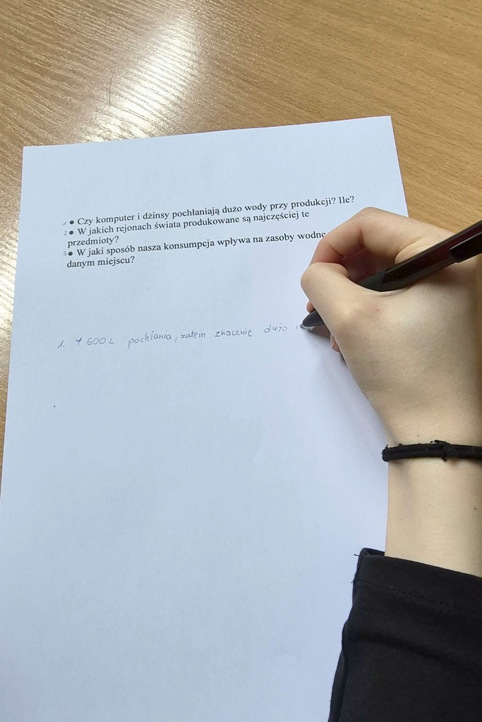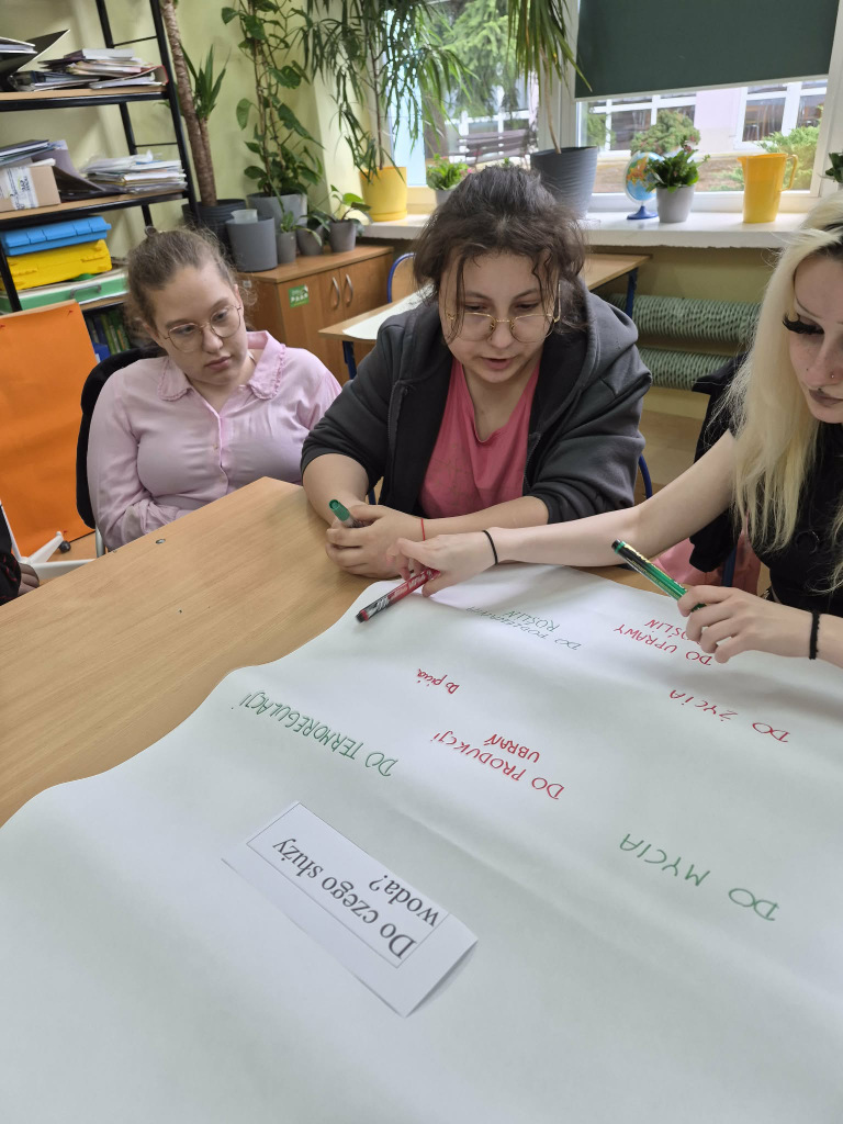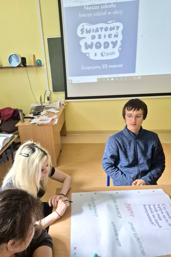 W trakcie zajęć uczniowie obejrzeli animację edukacyjną PAH „Oszczędzanie wody to za mało”, która stała się punktem wyjścia do dyskusji na temat zależności pomiędzy naszym stylem życia a globalnym dostępem do wody. Uczestnicy aktywnie angażowali się w rozmowy oraz zadania pokazujące, w jaki sposób codzienne decyzje dotyczące zużycia wody mogą oddziaływać na innych ludzi.