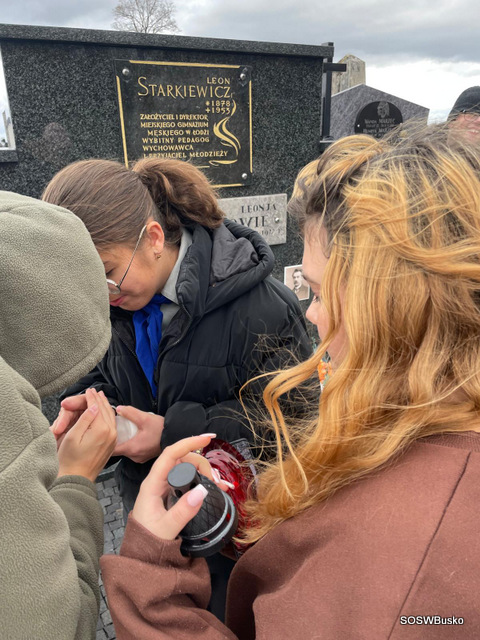 Specjalny Ośrodek Szkolno-Wychowawczy dla Niepełnosprawnych Ruchowo w Busku – Zdroju z dumą i zaangażowaniem bierze udział w tej pięknej inicjatywie. W tym roku, 28 października 2025 roku, harcerze wraz z druhną Agnieszką Szymańską odwiedzili cmentarz w Busku – Zdroju. Podczas wizyty zadbali o bezimienne i opuszczone groby oraz o groby osób zasłużonych dla Hufca ZHP w Busku – Zdroju. Uporządkowali je, zapalili znicze i oddali hołd tym, którzy zasłużyli się dla naszej społeczności i historii.