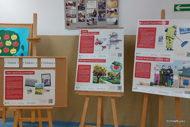 W dniach od 21 listopada do 28 listopada 2025r. uczniowie wzięli również udział w aktywnościach TEG organizowanych przez Polską Akcję Humanitarną. Ośrodek otrzymał od tej organizacji wyjątkową wystawę plakatową „W innym świetle”, skłaniającą do refleksji nad narracjami o otaczającym nas świecie oraz do rozmów o historii polskiej emigracji, stereotypach podróżniczych, uprzedzeniach czy współczesnym rozumieniu polskości. Wystawa wykorzystywała jako punkt wyjścia doświadczenia emigracyjne Polaków, zachęcając do krytycznego spojrzenia na to, jak postrzegamy siebie