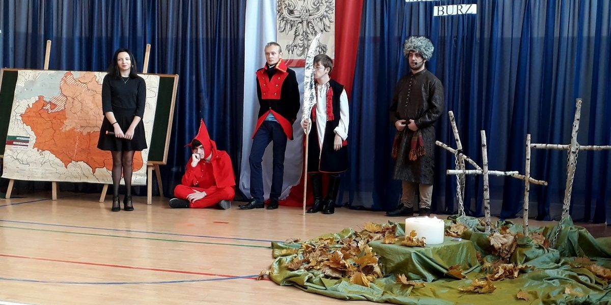 Wszystkim zgromadzonym uczniowie zaprezentowali piękne widowisko ukazujące trudną drogę Polski do wolności. Na scenie pojawiały się postaci historyczne: Stańczyk, Tadeusz Kościuszko, Józef Piłsudski, kosynierzy, polska szlachta, żołnierze. Duże wrażenie zrobiła dekoracja oraz kostiumy, które przygotowali uczniowie wraz ze swoimi opiekunami. Całość widowiska kończyła pieśń ojczyźniana Rota, którą wraz z występującymi w widowisku uczniami odśpiewali wszyscy zgromadzeni.