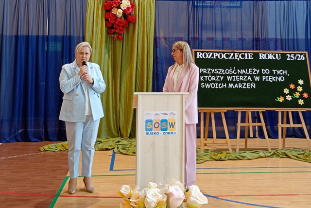 1 września 2025 r. w sali gimnastycznej Specjalnego Ośrodka odbyła sie uroczysta inauguracja nowego roku szkolnego. Po raz pierwszy w roli Dyrektora placówki wystąpiła pani Ewa Tomala, która w swoim przemówieniu podkreśliła, że szkoła to nie tylko miejsce zdobywania wiedzy, lecz także przestrzeń wsparcia, współpracy i wzajemnego szacunku.