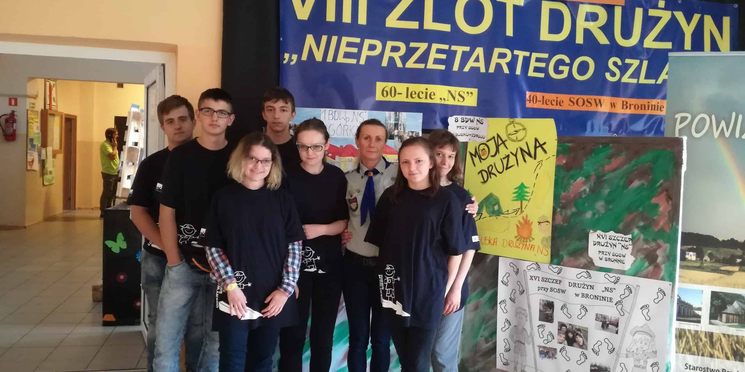 Dnia 17 maja 2018r. nasi harcerze wzięli udział w VIII Turnieju Drużyn “NS”, który odbył się w Specjalnym Ośrodku Szkolno-Wychowawczym w Broninie. Celem spotkania była integracja wszystkich drużyn “NS” wchodzących w struktury Hufca ZHP Busko-Zdrój z terenu Powiatu Buskiego tj.SOSW Bronina, SOSW Busko-Zdrój, ZSS Busko-Zdrój, POW Winiary, oraz uczczenie 40-lecia Ośrodka w Broninie i 60-lecia “NS” w Polsce. Imprezę uświetnili przybyli dyrektorzy wymienionych placówek. W ramach turnieju odbył