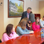W sali konferencyjnej odbyło się spotkanie z Panem Zbigniewem Koniuszem Wojewodą Świętokrzyskim, który opowiedział o swoich obowiązkach. Następnie zaprosił wszystkich do gabinetu, w którym pracuje. Chętni mogli usiąść w fotelu i zrobić pamiątkowe zdjęcia. Pani Ewa Nowak opowiedziała jakie obowiązki spoczywają na Dyrektorze Biura Wojewody i pokazała odnowioną salę konferencyjną, w której odbywają się m. in. konferencje prasowe oraz inne ważne uroczystości. W Centrum Powiadamiania Ratunkowego uczestnicy wycieczki zobaczyli, jak na co dzień wygląda praca operatorów numeru 112, usłyszeli, jak przyjmowane są zgłoszenia. W sali szkoleniowej uczniowie obejrzeli film edukacyjny dotyczący rodzajów zgłoszeń oraz zapoznali się z instrukcją, jak prawidłowo wykonać zgłoszenie. Dowiedzieli się, że pracuje 46 operatorów, szkolenie na to stanowisko trwa dwa tygodnie, kończy się egzaminem, konieczna jest znajomość języka obcego. Po zdaniu egzaminu ostatecznym potwierdzeniem umiejętności jest zgłoszenie testowe, o którym operator nie wie. W wydziale paszportowym uczniowie dowiedzieli się jak wygląda procedura otrzymania paszportu oraz kiedy wydaje się ich najwięcej. Sprawdzali jak pobierane są odciski palca.
