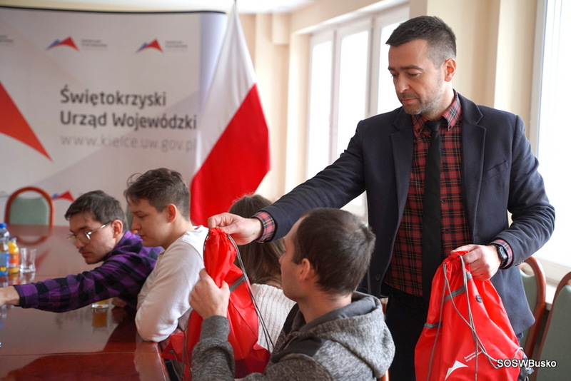 Uczestników powitali: Pani Marzena Chodkowska Rzecznik Prasowy Wojewody Świętokrzyskiego, Pani Ewa Nowak Dyrektor Biura Wojewody, Pan Robert Sabat Dyrektor Wydziału Bezpieczeństwa i Zarządzania Kryzysowego oraz Pan Michał Gałczyński zastępca Dyrektora w Wydziale Spraw Obywatelskich i Cudzoziemców.