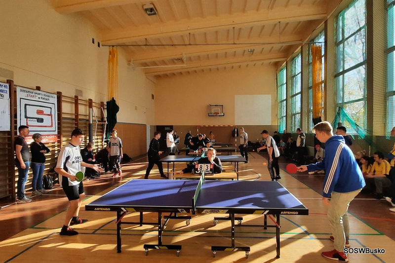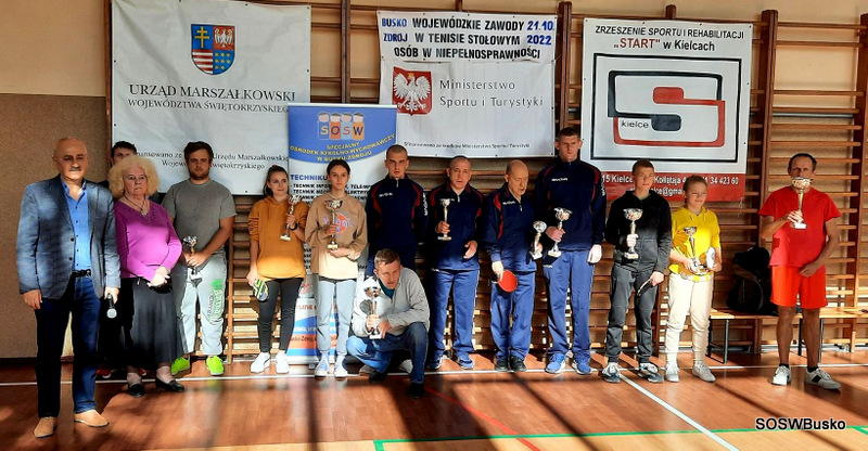 Dnia 20 października 2022 r. w naszej Placówce po raz kolejny odbyły się Wojewódzkie Zawody w Tenisie Stołowym. Organizatorami zawodów byli: Zrzeszenie Sportu i Rehabilitacji „Start” w Kielcach oraz SOSW dla Niepełnosprawnych Ruchowo w Busku – Zdroju.