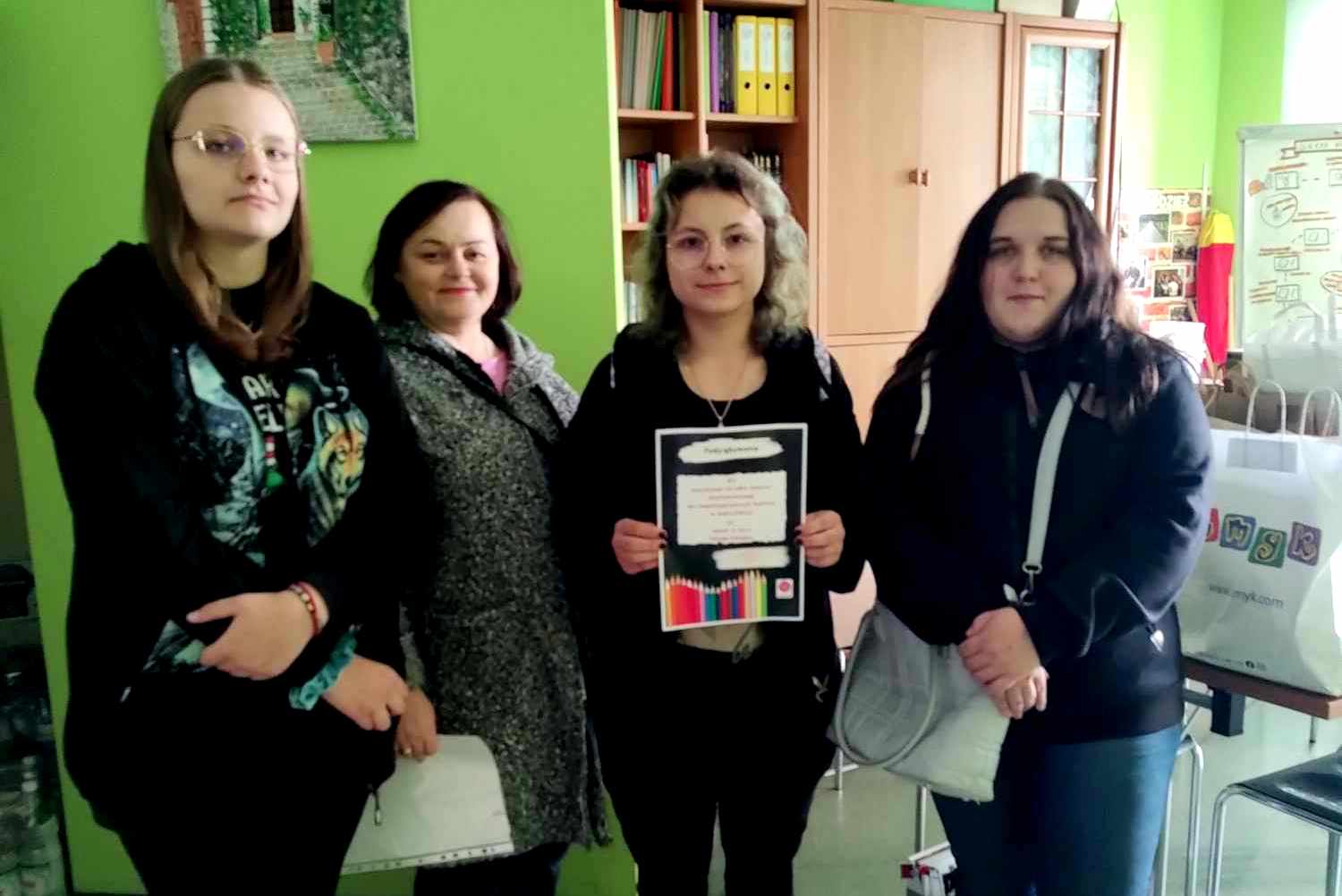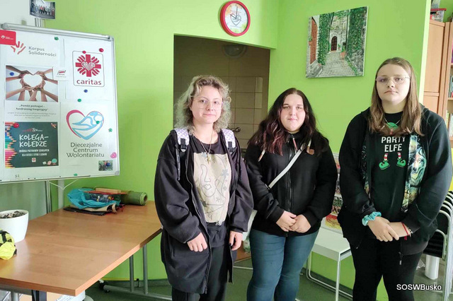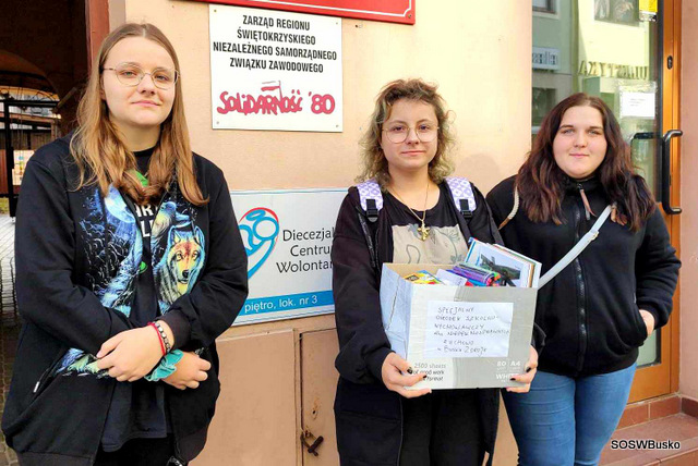 12 października 2023 r. przedstawicielki Szkolnego Koła Wolontariatu – Kamila, Agata i Kasia pod opieką pani Marty odwiedziły Diecezjalne Centrum Wolontariatu w Kielcach, aby przekazać artykuły szkolne zebrane w akcji „Kolega-Koledze”.