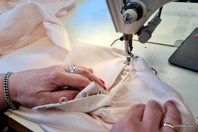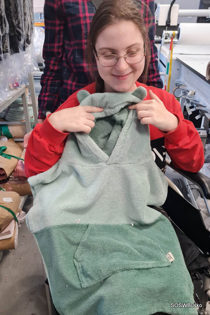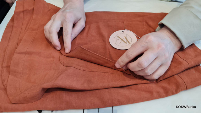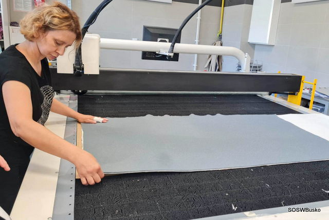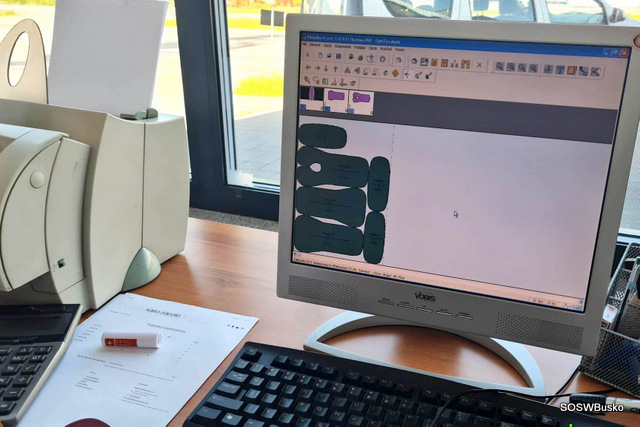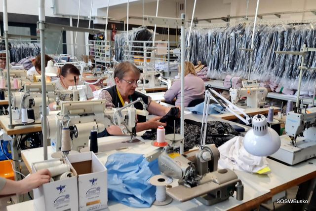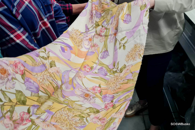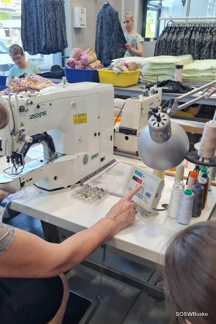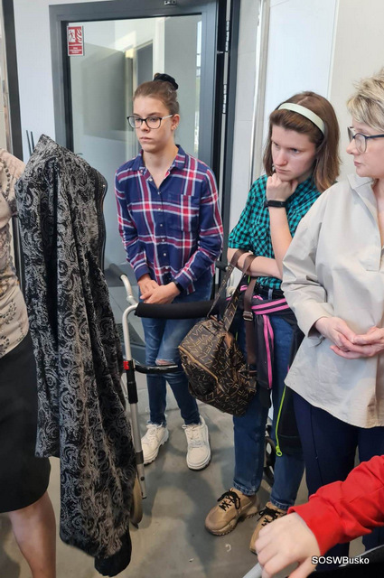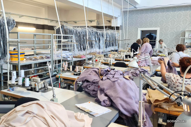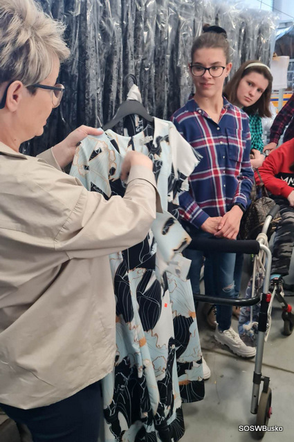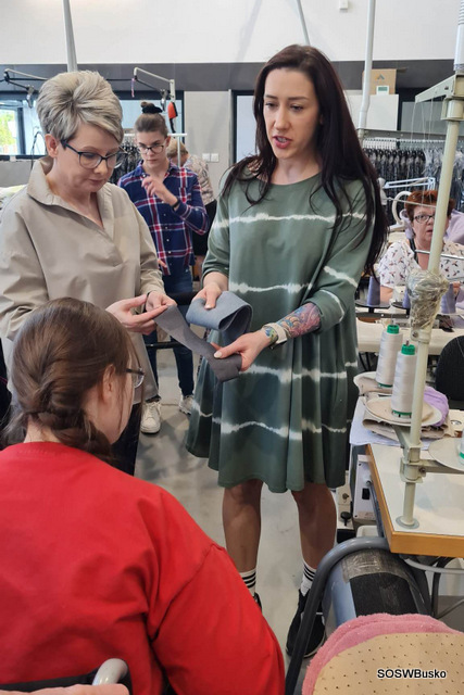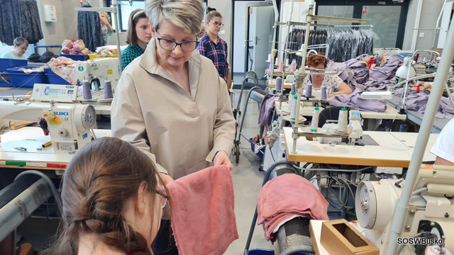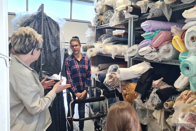 Po zakładzie oprowadzała nas Pani Aneta Piwowar kierownik produkcji. Pokazała nam wszystkie działy od magazynu z materiałami i dodatkami po pakowanie wyrobów gotowych do odbioru. Miałyśmy możliwość zobaczenia, jak pracuje się na nowoczesnych programach komputerowych wspomagających proces projektowania, stopniowania szablonów, układów kroju oraz krojenia. Następnie przeszłyśmy do krojowni, gdzie są wykrawane elementy pokrowca oraz oznakowane paczki z kompletnymi elementami innych wyrobów , które są na linii produkcyjnej. Przedstawiono nam nowoczesne maszyny do szycia między innymi : stębnówki, ryglówki, owerloki wspomagane także programami komputerowymi. Zakład szyje konfekcję damską i dziecięcą taką jak : sukienki wizytowe, bluzki damskie, komplety lniane, poncza kąpielowe dziecięce, czapki letnie oraz zmówienia nietypowe jak pokrowce na foteliki dziecięce samochodowe. Dostałyśmy próbki tkanin, dzianin oraz dodatki.