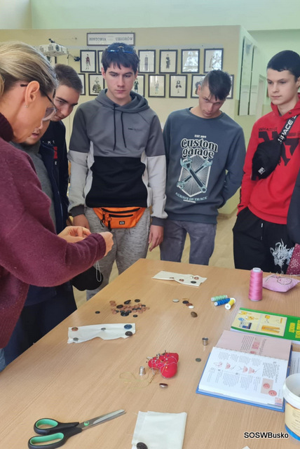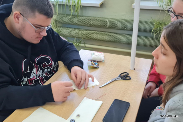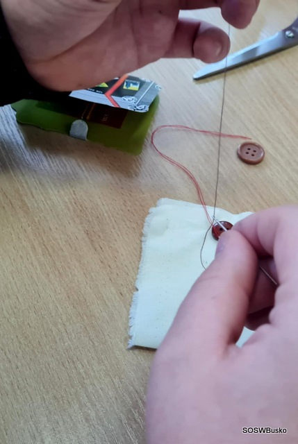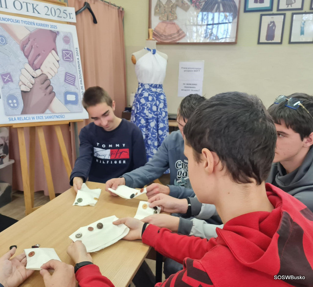 Na pozór proste czynności, takie jak przyszywanie guzika, stały się okazją do rozmowy o umiejętnościach miękkich i twardych, współpracy między zawodami oraz radzeniu sobie z codziennymi wyzwaniami. Zajęcia pokazały, że każda umiejętność – praktyczna czy interpersonalna – ma ogromne znaczenie w kształtowaniu postawy aktywnego i odpowiedzialnego pracownika.
