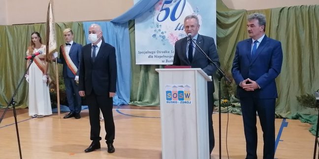 Następnie głos zabrał Dyrektor Waldemar Wójcik, który w swoim przemówieniu nawiązał do bogatej historii Ośrodka.” 50 lat w historii Ośrodka to cała galeria nazwisk, wielkich osobowości nauczycieli ,dyrektorów i wychowawców oraz uczniów, którzy -możemy tak obrazowo powiedzieć-„wyfrunęli” na własnych skrzydłach i choć czasem nie porzucili wózka, kul czy balkonika, ale zdobyli w naszym Ośrodku wykształcenie, usamodzielnili się uwierzyli we własne siły .Nie sposób porównywać Ośrodka z jego początków i teraźniejszości. To wręcz epoka w każdym aspekcie funkcjonowania. Wiedza medyczna, techniczna, pedagogiczna, psychologiczna to pasmo wielkich zmian. Odpowiadając na te zmiany ,zmieniał się także Ośrodek.”